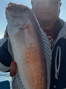 11月22日 釣果 本日はアマダイ釣りに出船しました。 海上穏か、少しウネリが残っているが悪い状況ではない。 開始早々40センチクラスの良型が何本か釣れて幸先の良いスタートでした。 以後、忙しい時間はなかったが場所を変えるたびに白アマダイ、アオハタ等が釣れて 最後まで楽しめました。 結果 白アマダイ 20~45センチ 3~10匹 アオハタ 船中5匹