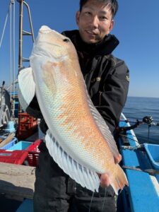 11月24日 釣果 本日白アマダイ釣りに出船しました。 海上穏かの絶好の釣り日和でした。 出足は潮が全く動かず、潮待ちの状態でした。 9時半ころより場所移動してから、潮が動き出し釣りも忙しくなり 終盤まで楽しい釣りができました。 白アマダイ、最大1.8キロを頭に7~12匹とまずまずでした。 白アマダイ20~52センチ 7~12匹 他 アオハタ 蓮子鯛、鯵等でした。